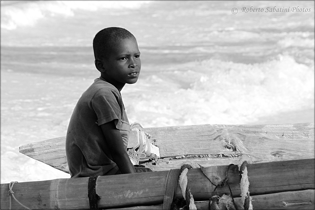 Qui, anche se parzialmente in ombra, il viso del ragazzo è ben esposto e stacca con decisione sullo sfondo chiaro della spuma del mare.