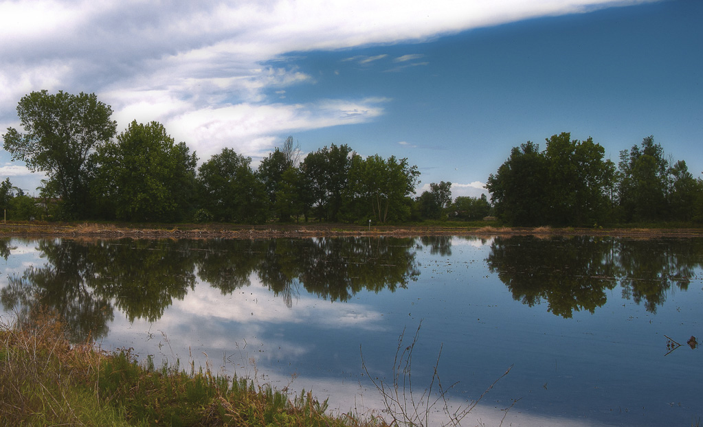 Peccato che il primo piano a sinistra vada un po' a sovrapporsi col riflesso dell'albero. Per il resto è sicuramente un'immagine piacevole