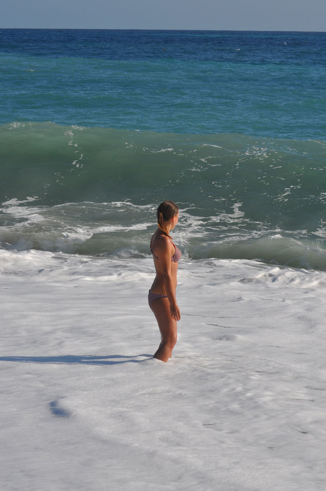 Meglio ancora sarebbe stato posizionarsi dall'altra parte, in controluce, e riprendere la stessa scena ma con il volto della ragazza visibile e la luce che filtra attraverso l'onda.