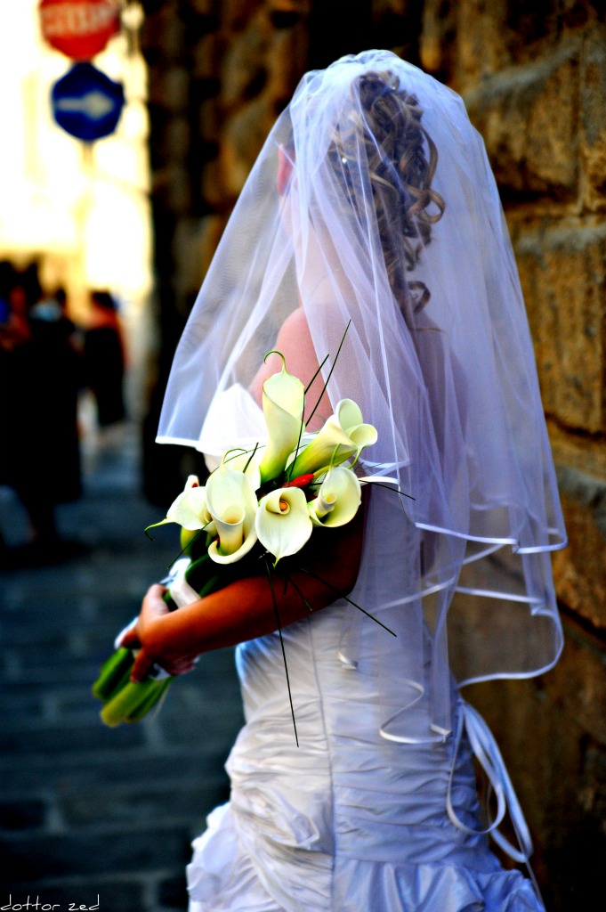 la parte a sinistra disturba l'immagine ma è clonabilissima Diabolico però lo scatto mi piace; sarà l'atteggiamento della sposa oppure le calle che pur essendo al centro del fotogramma rimandano l'attenzione sulla sposa stessa...mah