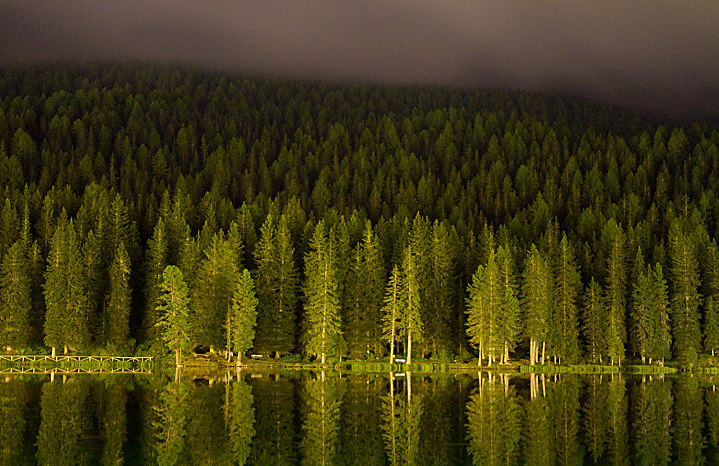 Un'immagine molto suggestiva e assai ben realizzata. Se fosse stato possbile includere nel riflesso anche le cime degli abeti di prima fila, sarebbe stata ancora meglio, ma anche così è molto buona.