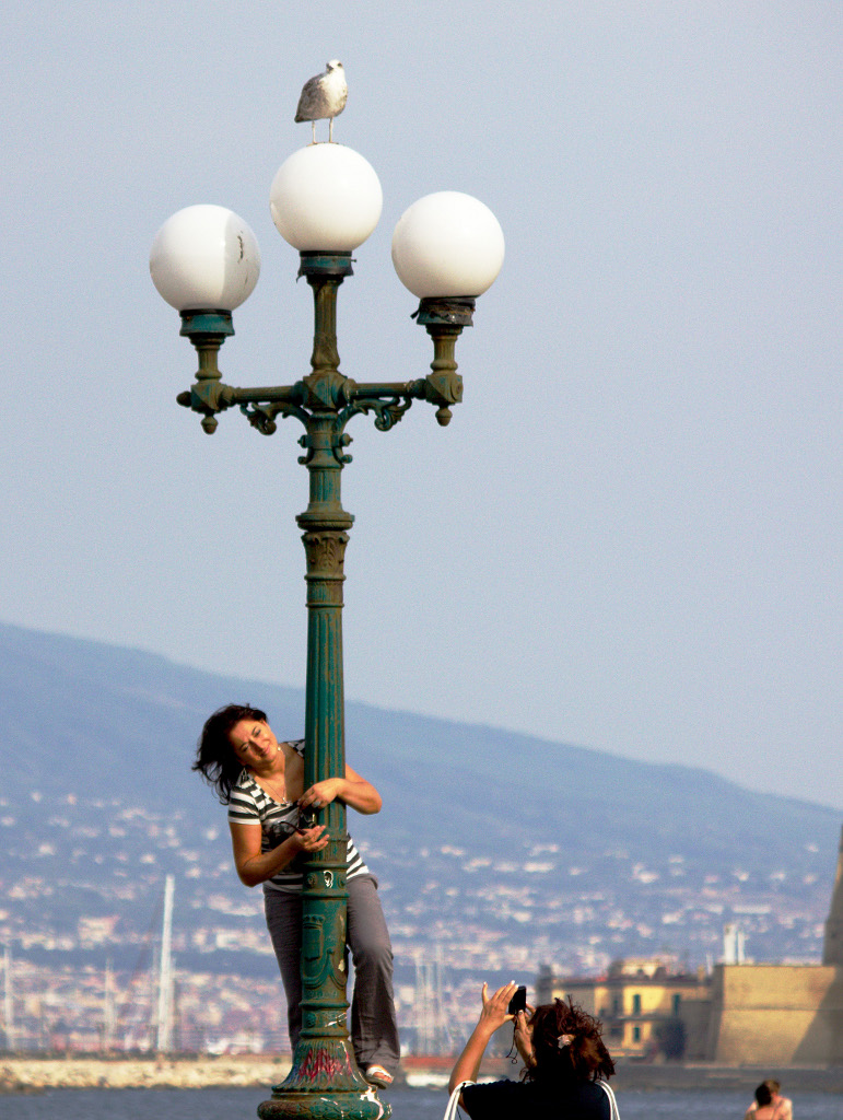 Se volevi porre l'attenzione sulla coppia fotografa/modella, a mio avviso era meglio tagliare la parte alta del lampione e liberarsi delle due teste a destra.