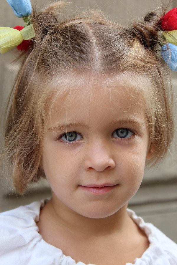 Forse, essendo una bimba, il colore ci sta tutto e quindi avresti potuto riprendere i fiocchi colorati con un taglio orizzontale oppure allargando leggermente l'angolo di ripresa.