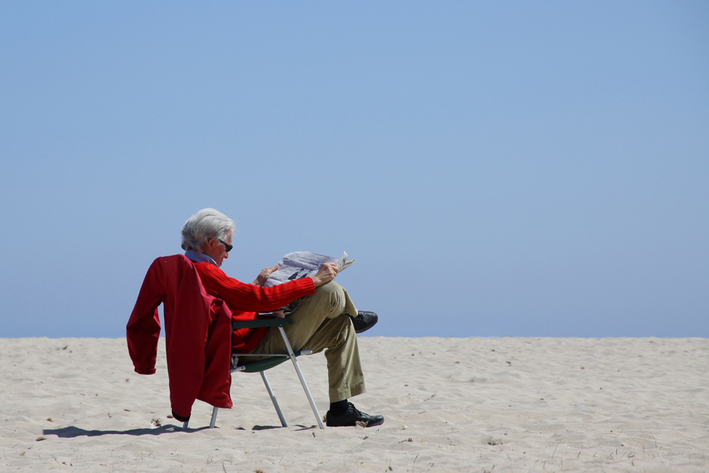 Mi sa proprio di non avere scatti di questo tipo. Naturalmente ho realizzato degli altri scatti, ma per lo più si differenziano da questo per l'altezza del punto di ripresa. Nei primi scatti, infatti, ottenevo uno sfondo meno uniforme, in quanto era visibile pure il mare; mi sono allora abbassato sempre di più, fino a sdraiarmi per terra, fino a quando non ho ottenuto la figura dell'uomo su uno sfondo composto solamente da queste due fasce: sabbia e cielo.