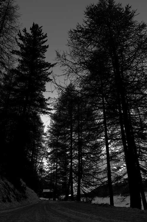 Purtroppo trovo la casa defilata e molto in ombra; se non fosse stato per il titolo, non l'avrei notata. Per il resto, sono belle le sagome nere degli abeti.