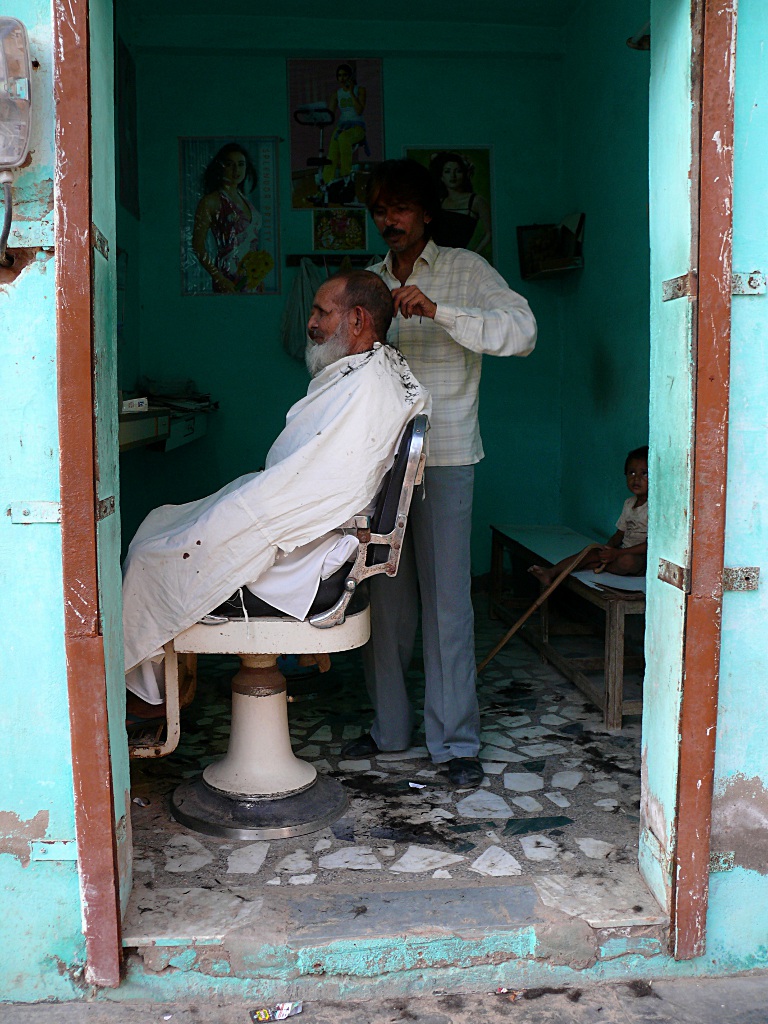 E magari il bimbo ha accompagnato il nonno a tagliarsi i capelli, e gli custodisce il bastone nell'attesa...