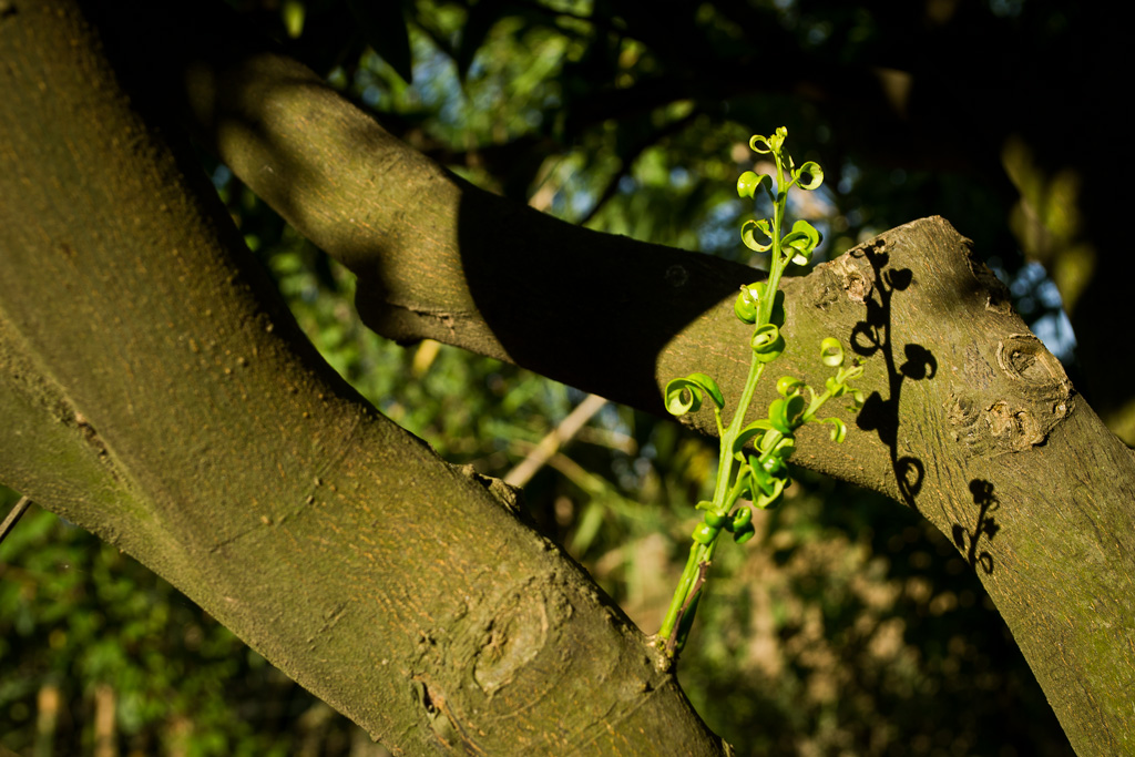 A mio avviso c'è un piccolo difetto di messa a fuoco -il tronco posterire al posto del germoglio- ma nel complesso è una buona immagine, specialmente per il gioco di luce e ombra.
