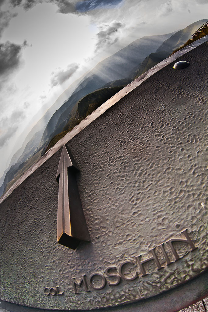 Se desideri accentrare l'attenzione sul cielo sul quale punta la freccia allora toglierei luminosità alla freccia ed al suo contorno, viceversa se l'intenzione era quella di attrarre l'attenzione sulla scritta col moschin come da titolo dello scatto. _________________