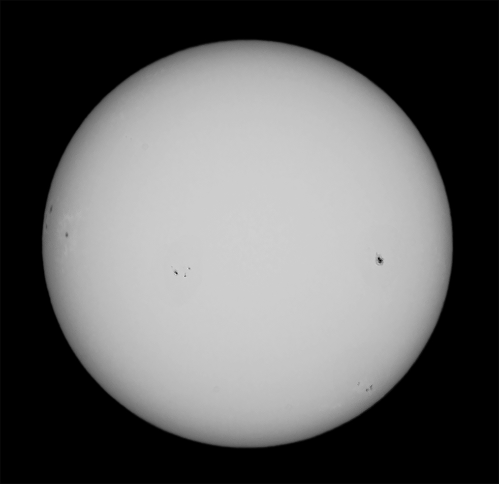 in b-n formato raw (arw sony) perché con l'elaborazione del colore, pur buono che sia, non aggiunge niente di buono. poi con il grezzo in bn si può lavorare meglio con photoshop. il colore eventuale, sul giallo. rosso a seconda dell'ora di ripresa, lo puoi aggiungere come vuoi. personalmente avendo ripreso il sole alle ore 14,30 ed essendo di colore bianco, ho preferito lasciarlo in bn. successivamente ho preferito scurire per evidenziare di più le macchie solari. stop _________________ SONY A900 e A700 -sony 50 1,4 -50 macro 2,8 - 28/75 2,8 - 70/300 G -minolta 24/85 35/105 70/210 4 75/300 - sigma 17/35 - minolta md 50 1,7 - 50 3,5 macro - tokina 500/8.-