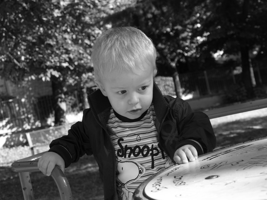 Bellissima espressione colta,mi piace molto la resa della pelle in questo B/W meno il taglio avrei avvicinato il soggetto al margine sx dando maggiore rilievo all'espressione del bambino.(parere mio )