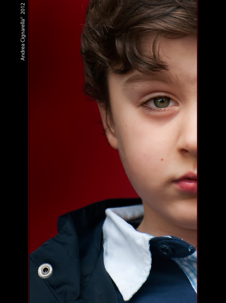 Tra l'altro non è assolutamente posato visto che la foto è stata scattata per strada approfittando dello sfondo rosso. Ovviamente ho centrato in pp il viso sul bordo del fotogramma.