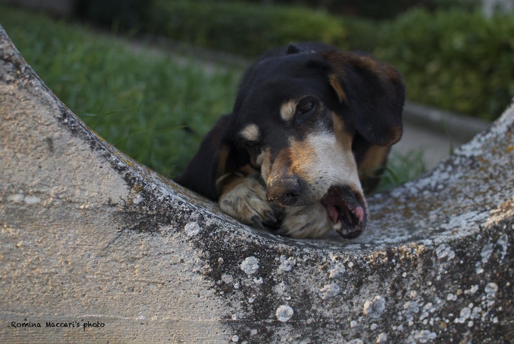 Che intendi per "cupa"? sta mordendo un sasso che tiene tra le zampe