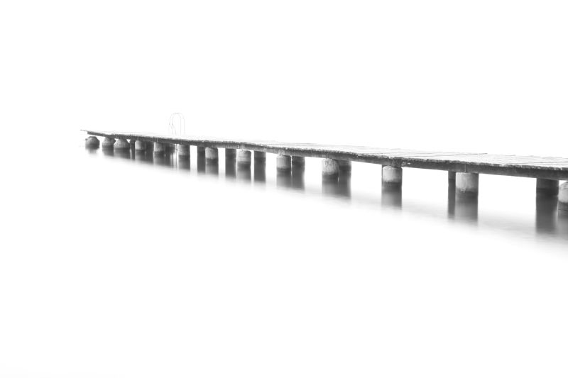A mio avviso appare troppo evidente che il risultato lo si sia ottenuto non con espedienti tecnici ma cancellando i particolari indesiderati, la qual cosa dà un tono artefatto alla scena (perlomeno non con la sola esposizione prolungata, o almeno così a me pare, ma correggimi se sbaglio). A parte questo trovo che il posizionamento del soggetto nel rettangolo (essendo l'interpretazione sostanzialmente di natura grafica) non sia il più efficace, in quanto rimane incerto se essere "centrale" (cosa che non è) o lasciar prevalere lo spazio in alto o in basso (cosa che non fa). Allora meglio una scelta meno ambigua, secondo me.