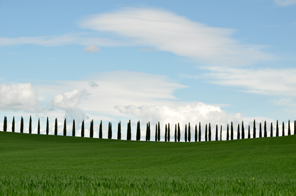 Per la massima pulizia di composizione suggerirei di togliere dal bordo destro il cipresso a metà.