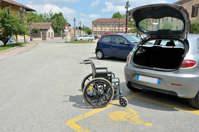 Ho voluto nascondere di proposito sia il disabile che il suo accompagnatore per un senso di rispetto; quindi ho ripreso solo la carrozzina con il segnale cercando di creare un filo logico.