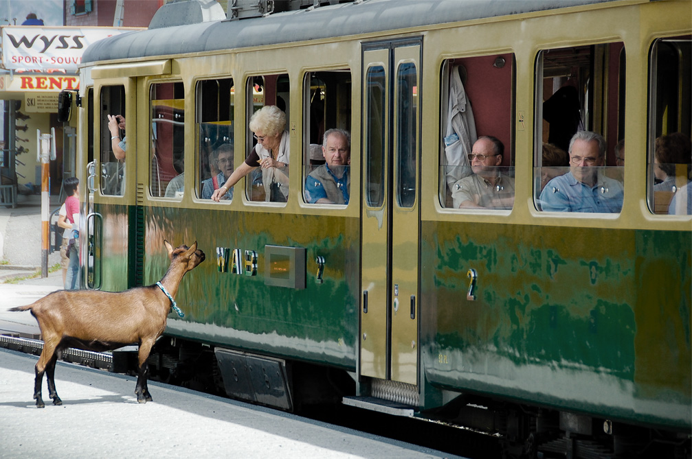 Ero ad Interlaken, in Svizzera, questo treno ti porta fino nei ghiacciai, se non erro dovrebbe essere la linea ferroviaria più alta d' Europa!