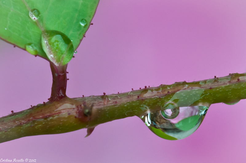 Lo sfondo risalta le cromie della foglie e della goccia...