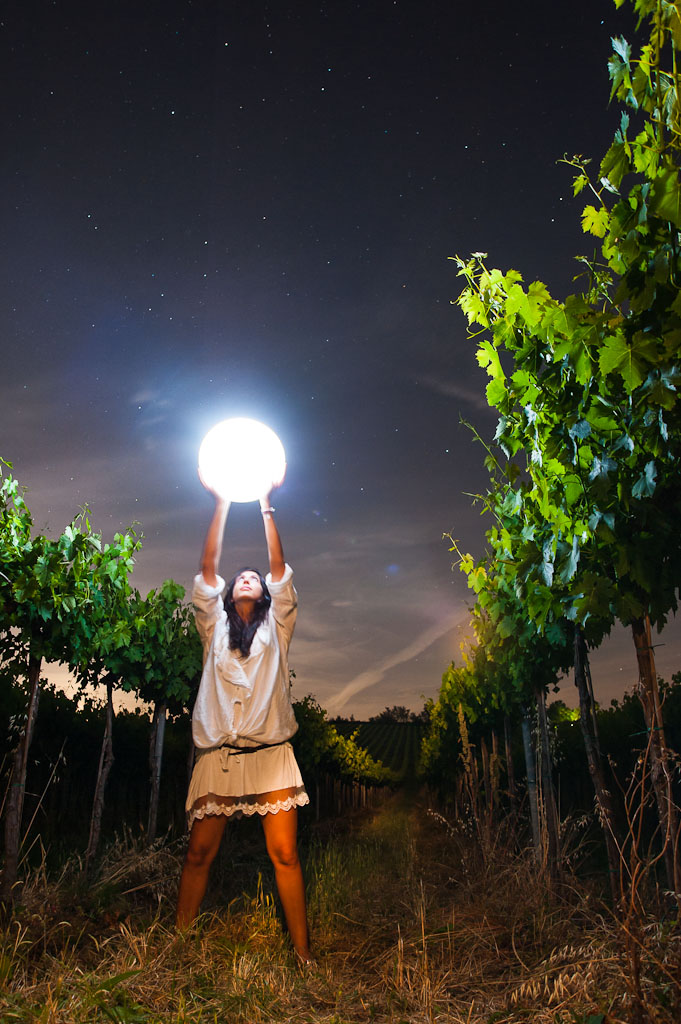 Utilizzato flash all'interno di globo di vetro e torcia per schiarire vigna e terreno |