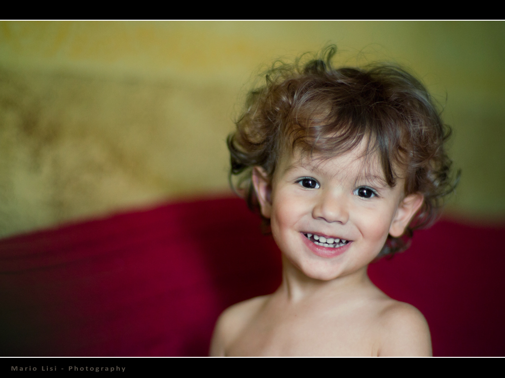 | Che bello questo ritratto del sorriso di bambino e della sua felicità nell'essere ritratto. Apprezzo in particolare i colori dello sfondo, dell'incarnato e dei capelli, che contribuiscono a rappresentare la solarità dell'espressione colta.. Forse dipende dal monitor del mio computer, vedo delle punte (puntine...) di ciano nelle palpebre, nella sclera degli occhi, nei dentini...ma sono minuzie. Complimenti Mario per quest'ottimo ritratto, buone foto. Saluti Salvatore. |