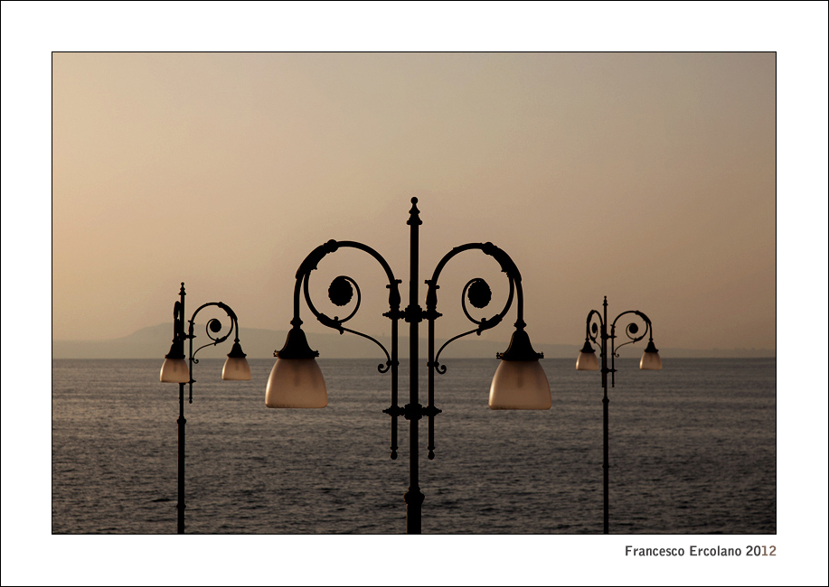 Si tratta dei lampioni che accolgono (oppure salutano) i viaggiatori via mare che arrivano a Sorrento; da tempo volevo fotografarli...finalmente la luce che cercavo...