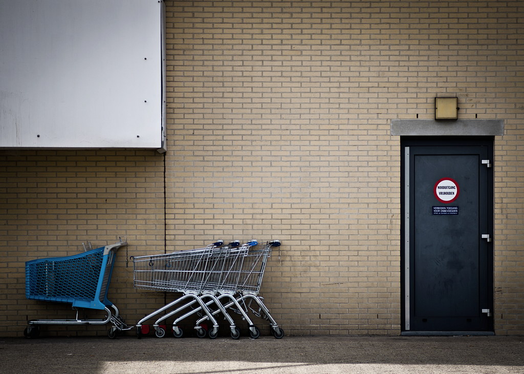un non-luogo, dove gli oggetti assumono comportamenti umani, i carrelli sembrano una famiglia in fila, appena uscita dal supermercato: antropomorfismi d'agosto.