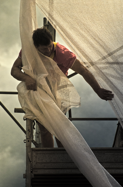 In questo senso concordo sul fatto che il soggetto si preseti a differenti letture, che vanno al di là della semplice documentazione del lavoro di un unomo su un'impalcatura.