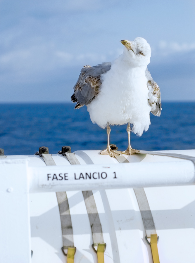 Un po' vecchiotto questo gabbiano, era sicuramente stanco o stava scroccando un passaggio!