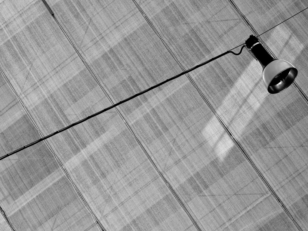 La trama mi ha fatto immaginare la stoffa di un vestito sulla quale si apre un'asola di luce, dove è appuntato il lampione a mo di spilla.