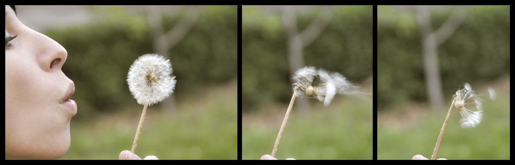 Idea buona ma realizzazione frettolosa e nitidezza scarsa. Essendo una foto fatta di poco ogni elemento andava preso in considerazione con attenzione. Nel decidere i tagli dovevi scegliere se l'occhio ci doveva stare o no, se le dita dovevano restare fuori oppure se della mano doveva esserci qualcosa di più, se l'alberello sfocato a Y sullo sfondo sta bene lì o disturba e così via. Mi sembra buono il suggerimento di Sisto di assegnare ad ogni elemento del trittico una dimensione a scalare.