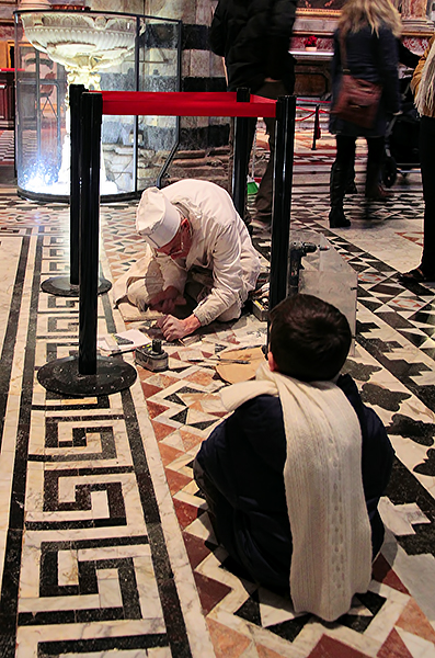 Grazie della vostra visita, il signore in camice bianco stava restaurando il pavimento della basilica, non potevo omettere il bambino in quanto la cosa che più mi ha catturato è stata l' attenzione che dedicava al lavoro del restauratore.