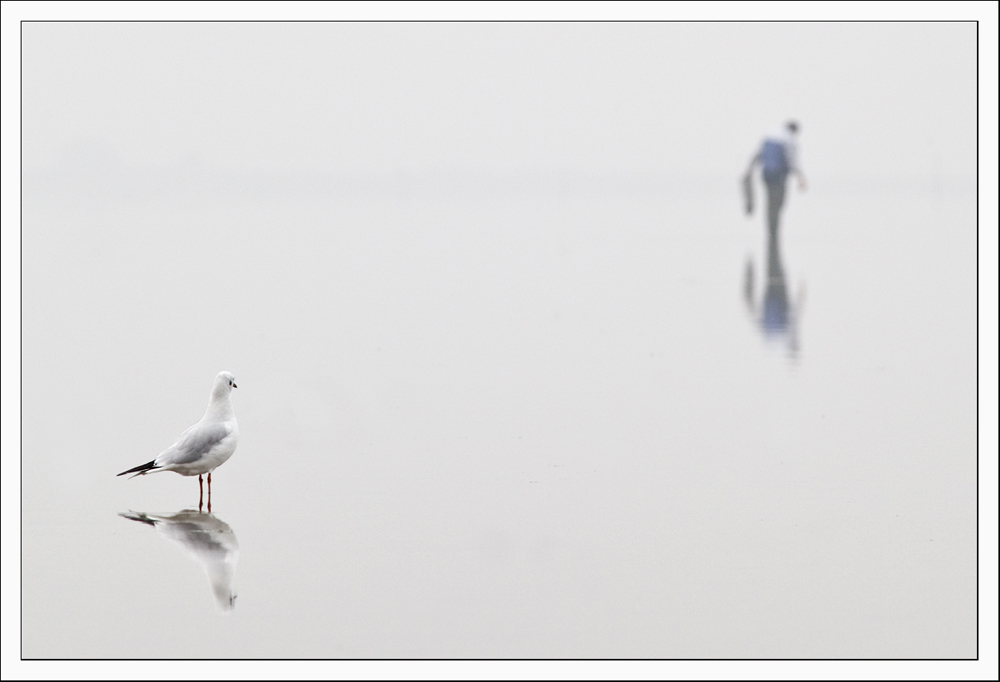 Sulla proposta di taglio condivido l'opinione di Sisto: una cosa è dire che quella figura lontana vaga e indefinita è efficacissima nello svolgere una funzione nella scena ripresa, altra cosa è strapparla dal contesto. Anche il riflesso del gabbiano è molto bello, ma non proporrei di rivedere il taglio mantenendo quello ed eliminando tutto il resto.
