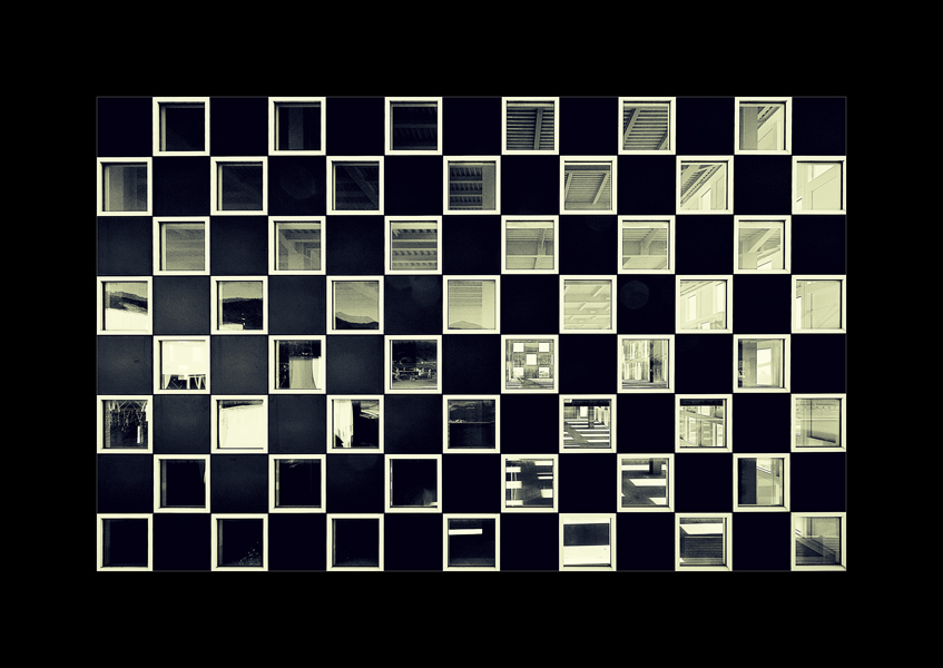 Mi piace questa scacchiera psichedelica dall'impeccabile architettura,questi spioncini che ci fanno soffermare a lungo nel tentativo di ricostruirne il contenuto.
