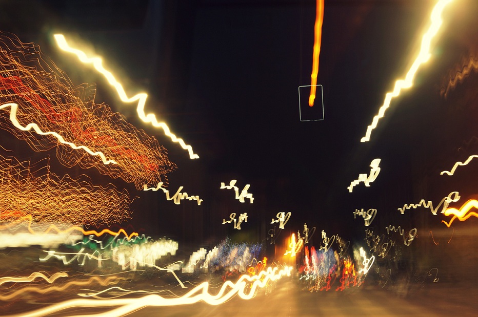 Il centro d'interesse della foto è dato dalle scie luminose delle luci e non dall'uomo, che qui è completamente assente..
