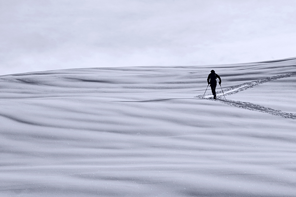 Questa mi piace in quanto mi da una bella sensazione di solitudine che ogni tanto si apprezza in una salita di scialpinismo.