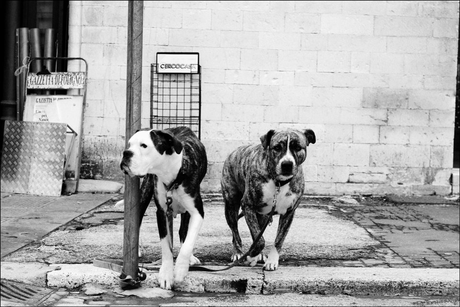Ambientato? Silvano, siamo per strada, un marciapiede, un palo, due cani