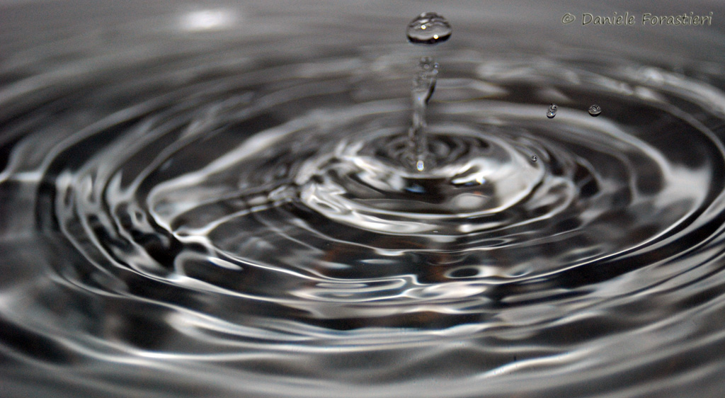 Ecco l'unica foto appena presentabile di una 60ina di foto provate alle gocce che cadono in un recipiente che contiene acqua.