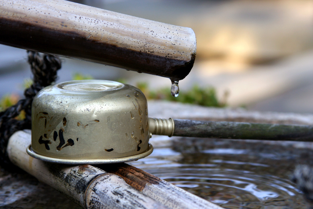In Giappone prima di entrare nei templi bisogna "purificarsi": si prende il mestolo, lo si riempie d'acqua, si beve e a volte la si sputa.