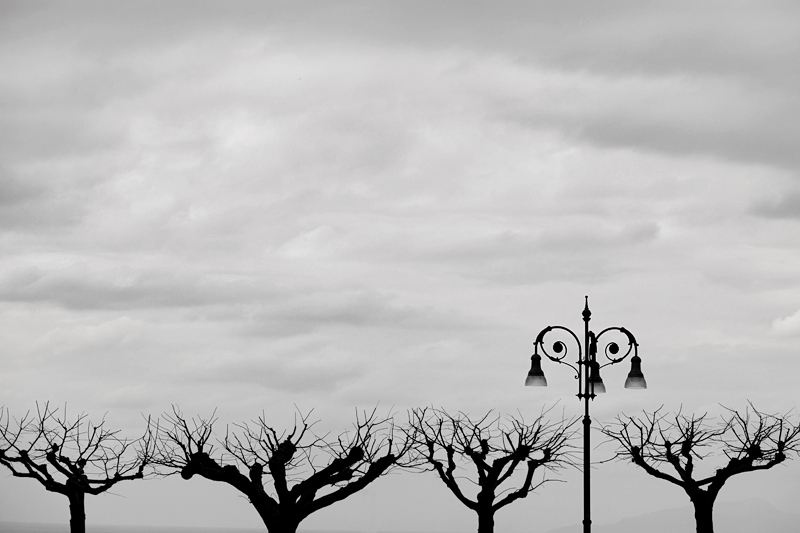 Giustamente qui annulli al massimo la tua stessa influenza, che sempre parla con le tonalità calde e la delicatezze dei contrasti, per esaltare il prezioso succedersi di forme che il tuo occhio ha inquadrato. Ne esce una realizzazione senza colore e dal contrasto altissimo. Eppure tutto ha un perfetto equilibrio che nasce proprio dalla nota acuta del bel Lampione che si alza oltre la schiera delle chiome spoglie. Molto molto bella.