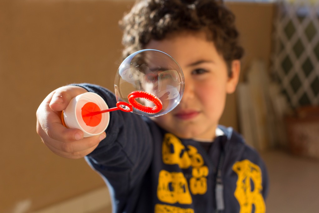 | la bolla in primo piano ed il viso sfocato! bello scatto |