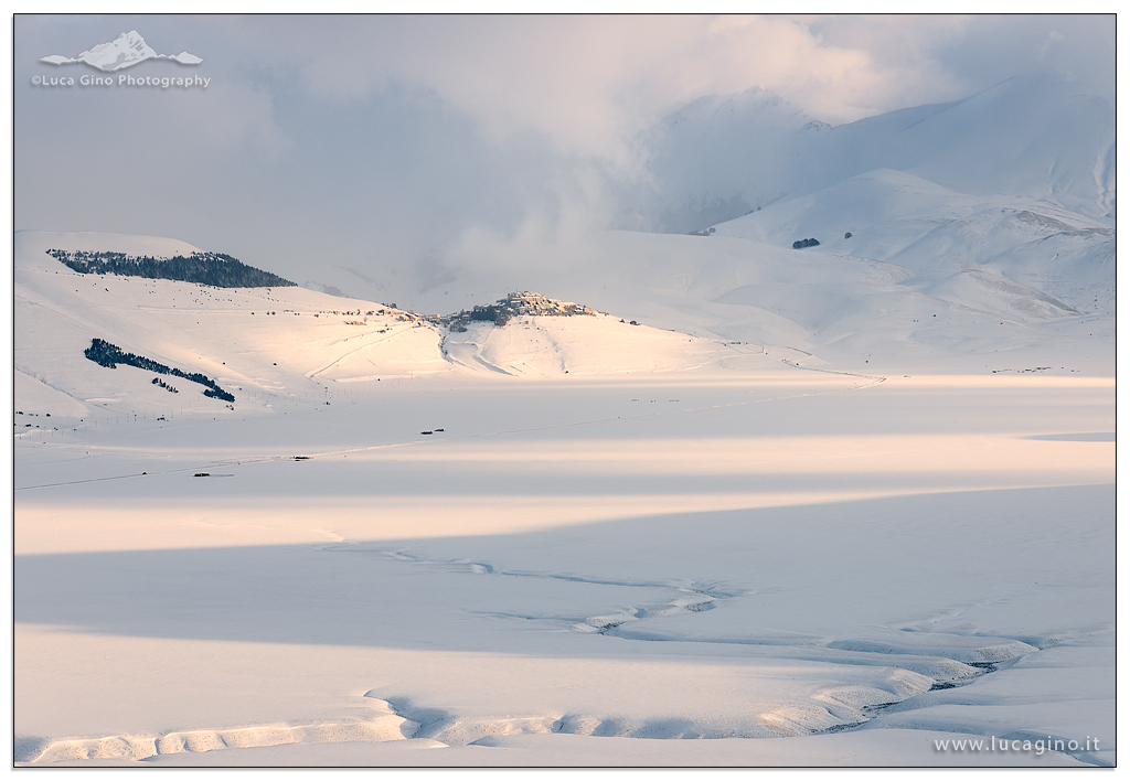 Si apprezza la composizione, il momento della scatto che beneficia di una bella luce trasversale, la perfetta esposizone che consente una lettura dei dettagli sulla neve, il magnifico paesaggio invernale di Castelluccio di Norcia sul quale incombono sulla destra i contrafforti del monte Redentore tra le nuvole e le ombre della sera.