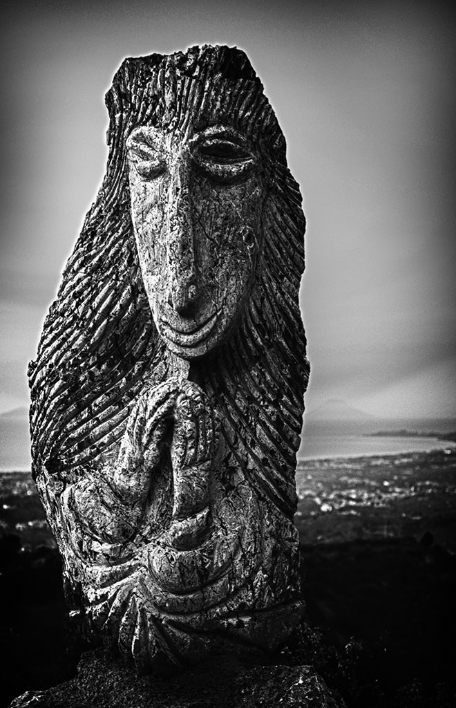 Direi che hai calcato la mano in tutto: inquadratura senza respiro, postproduzione aggressiva e contrastata, vignettatura hard. Nel complesso non ne viene fuori una buona foto. È rimasto un brutto alone chiaro tutto attorno al soggetto.
