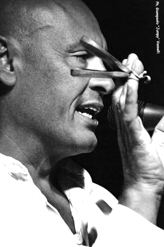 ... trattandosi di una ripresa realizzata durante uno spettacolo, non conoscendo i dettagli della tua posizione ed i vincoli imposti dalle circostanze, mi limito a rilevare una certa esuberanza d'elementi grafici all'interno della scena: dal microfono, a quello che ritengo siano uno strumento musicale, passando per le mani.