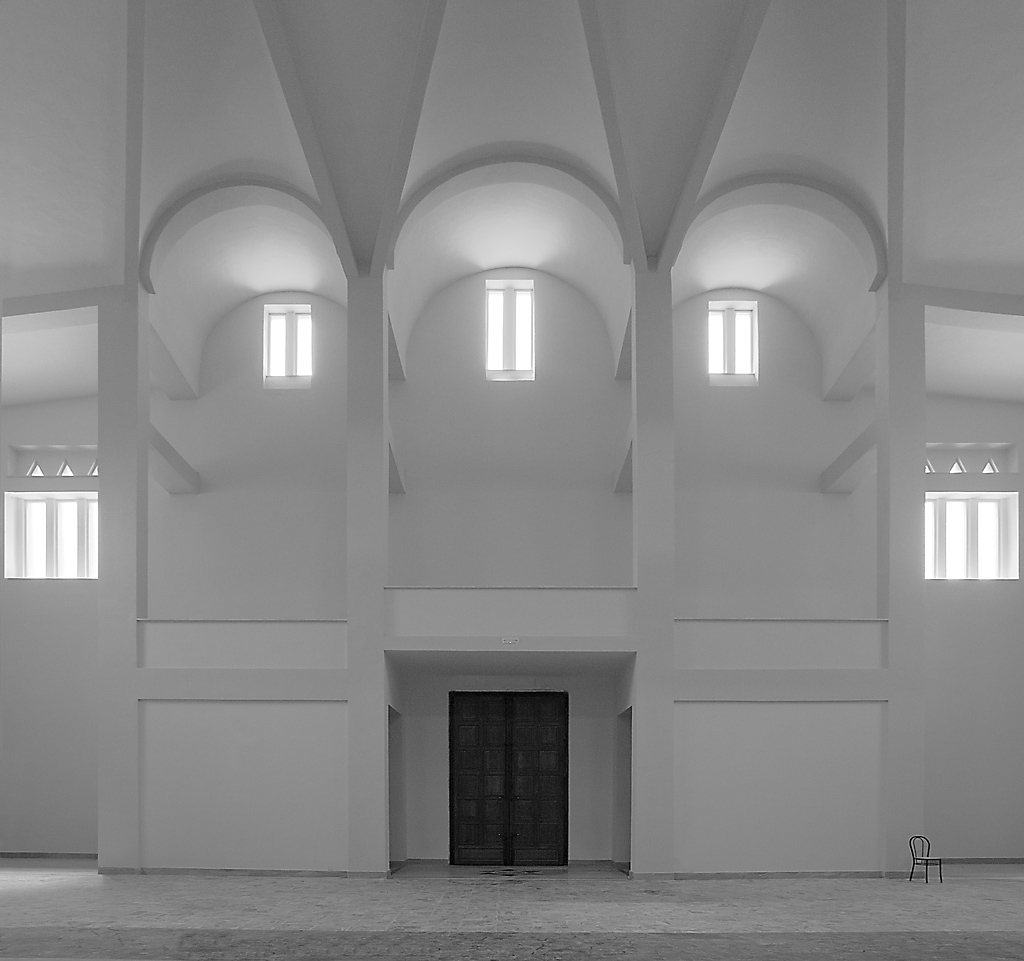 Allora.. visto che hai deciso di mettere tu là la sedia, ti vanno fatti i doppi complimenti sia per l'abilità nel catturare tutta la scena con questa scelta così frontale, sia per aver capito che quell'elemento là in basso a destra sarebbe stato il quid in più utile a 'movimentare' quella zona, arricchendola di un elemento anti-simmetrico.. direi che a livello di prospettiva centrale e di profondità assoluta grazie a luce chiaro scuro ci sia poco da criticare.. Wink