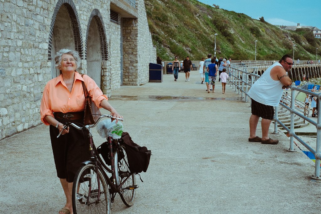 Manca un po di luce, che forse nemmeno c'era viste le ombre deboli. Il gesto del viso della signora è la cosa piu interessante, il taglio in basso un po meno.