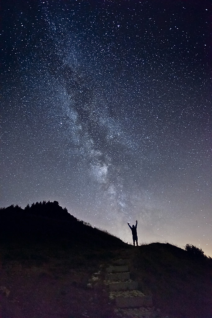 Io personalemente avrei composto eliminando i primi tre gradini dal basso, l'alone rosso recuperato per intenderci, lasciando lo scatto "squilibrato" verso le stelle...