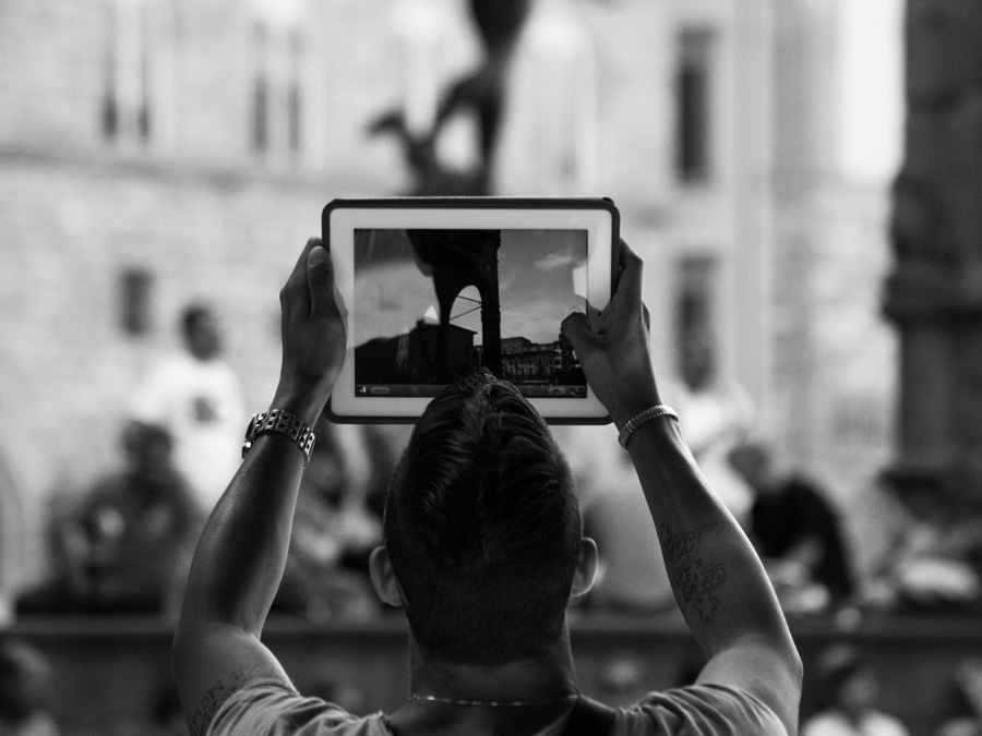 E un'immagine dal valore ormai collaudato, tale da essere universalmente riconosciuta come norma di rappresentazione di una realtà stabilmente acquisita della cultura che ne fa uso, mi ricordo i milamila tentativi fatte alle compattine nelle stessa identica posa..e decisamente non possono reggere il confronto, molto meglio queste fatte ai tablet.