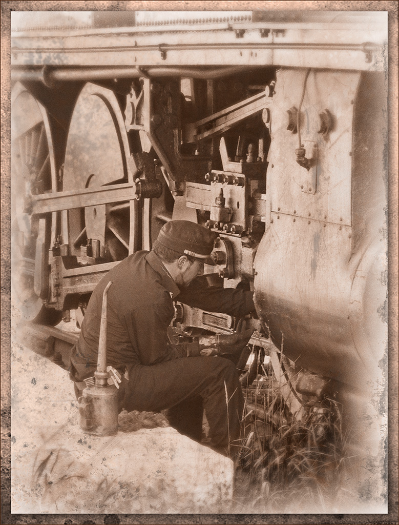 Il macchinista coccola la 'sua' vaporiera ad ogni fermata, come si faceva nel secolo scorso.