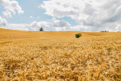 Gli elementi che interrompono questa gradevolissima distesa di grano sono troppo piccoli per essere letti come soggetti e allo stesso tempo troppo grandi per essere visivamente trascurati. Si pongono quindi in una fastidiosa posizione intermedia che (a mio parere) crea confusione: siamo spinti a guardarli ma ci riusciamo a fatica. Questo costringe i nostri occhi a vagare nella vana ricerca di un elemento significativo su cui soffermarsi.