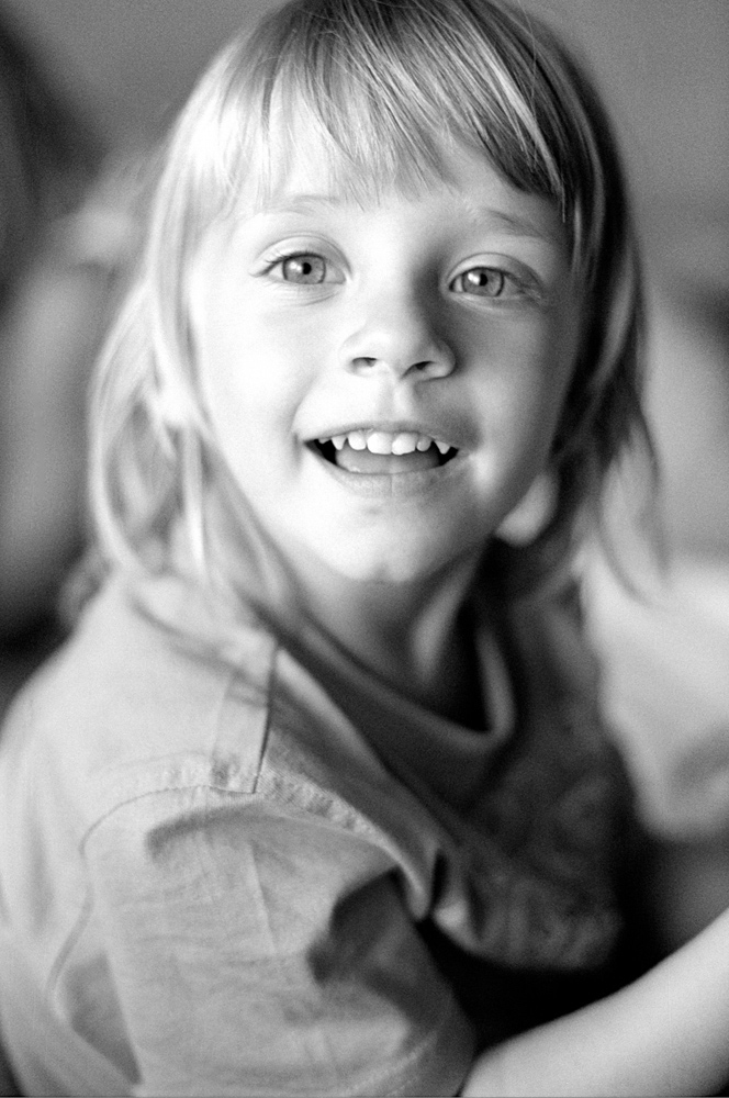 bel bianco e nero che compensa egregiamente la differenza d'illuminazione delle parti destra e sinistra del volto; bellissimo il sorriso spontaneo
