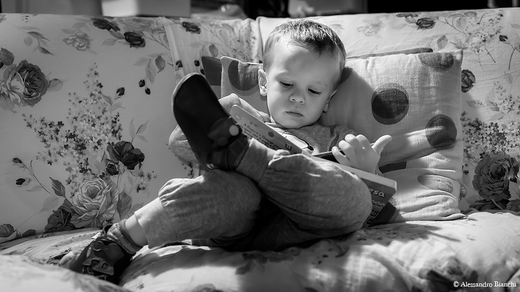 immagino che le luci artificiale e le dominanti introdotte ti abbiano fatto orientare su una conversione in bn che, però, non trovo molto efficace per la poca differenza di toni tra l'incarnato del piccolo, i suoi indumenti ed i tessuti del sofà che fa da sfondo.  _________________ Salvatore